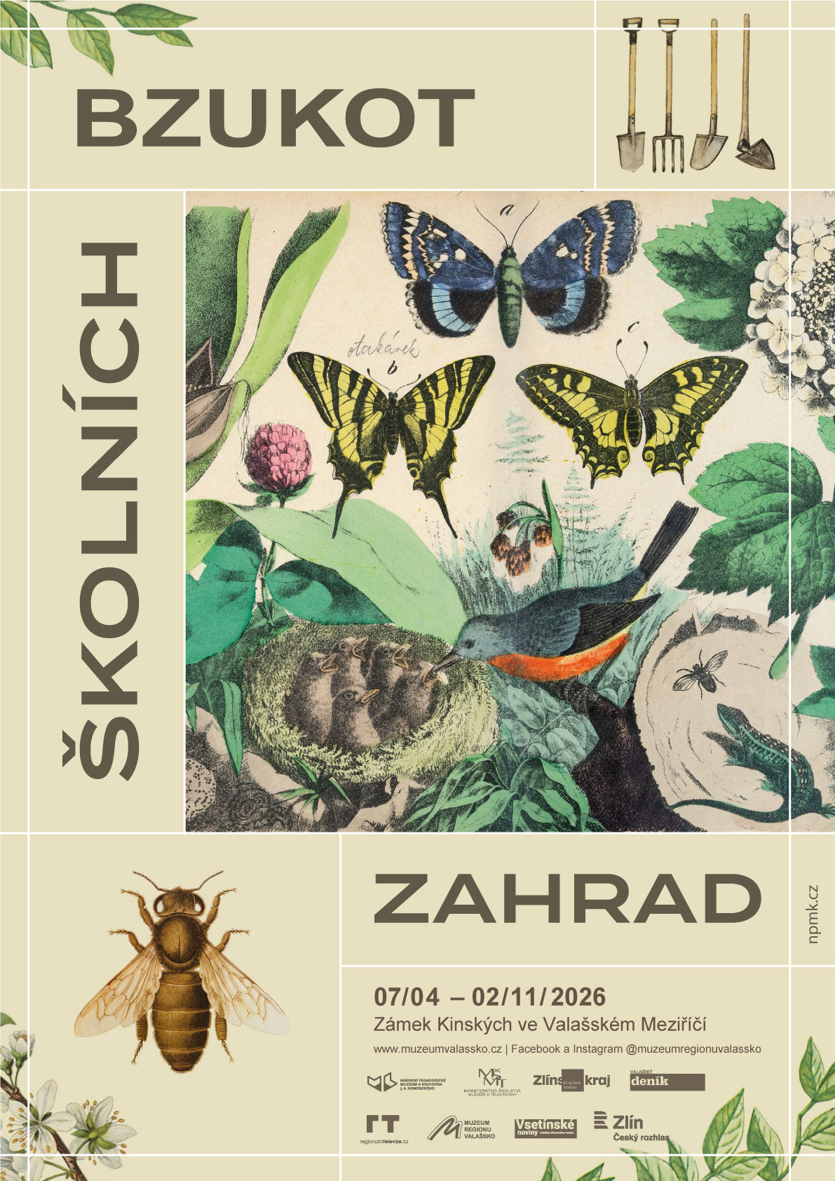 Nenechte si ujít vizuálně i obsahově atraktivní výstavu Bzukot školních zahrad, která proběhne od 7. dubna do 2. listopadu letošního roku v Muzeu regionu Valašsko na zámku Kinských ve Valašském Meziříčí. Návštěvníkům přibližuje formou zajímavých exponátů a interaktivních prvků fascinující fenomén školních zahrad a jejich význam v dějinách vzdělávání. Zájemci si k ní na recepci zámku budou moci zakoupit i doprovodnou publikaci. Pro školní kolektivy jsou připraveny speciální edukační programy. Více na https://www.muzeumvalassko.cz/akce-a-vystavy/bzukot-skolnich-zahrad-1