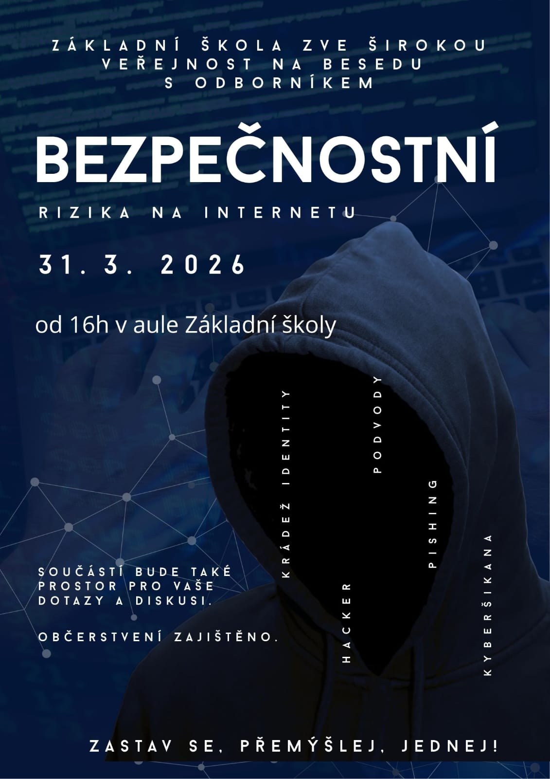 Základní škola Františka Palackého v Hodslavicích Vás srdečně zve na besedu s odborníkem na téma Bezpečnostní rizika internetu.