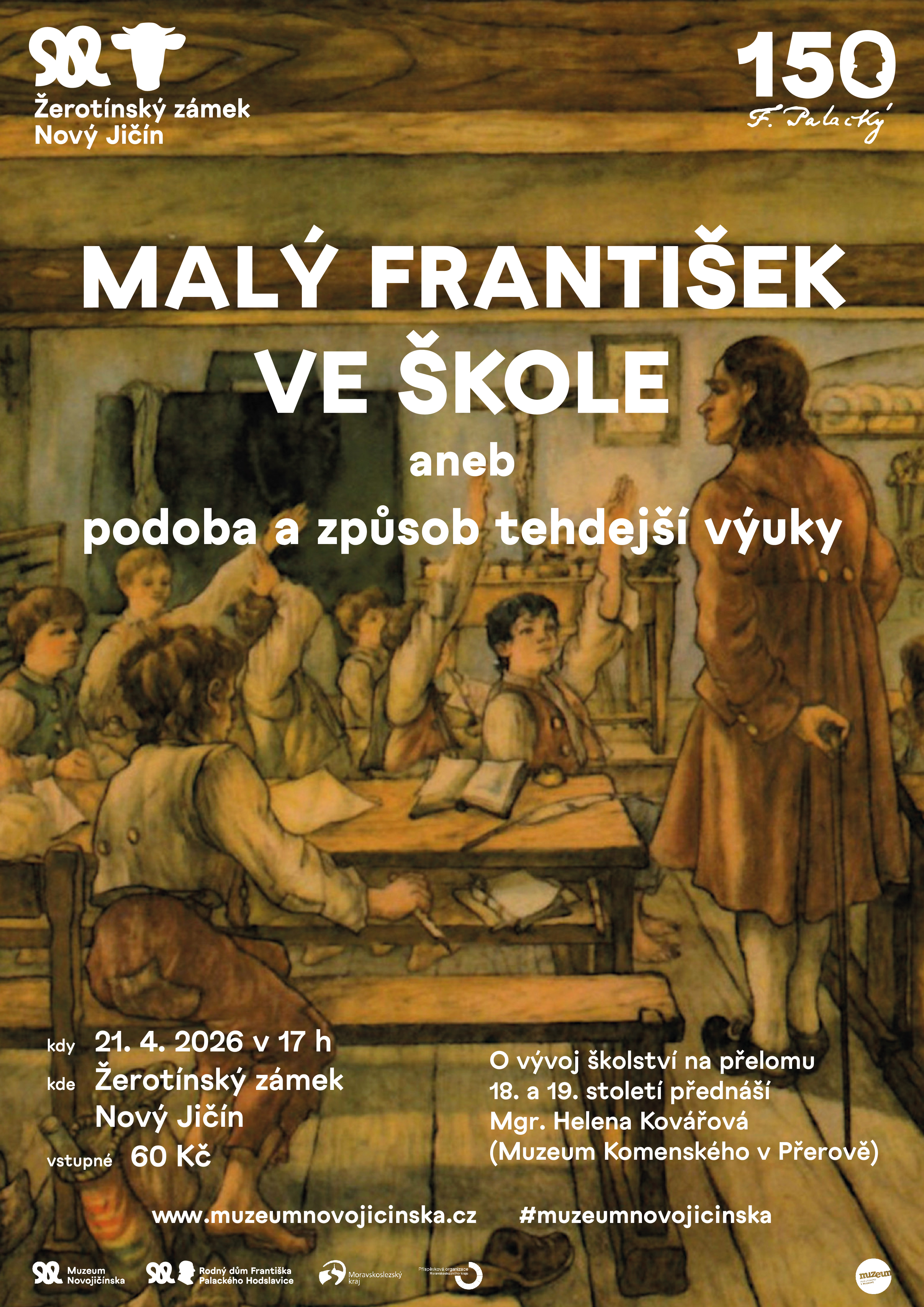 Pozvánka na přednášku Malý František 17.4.2026 Vystavil: Jana Horáková Sdílet Sdílet Klikněte pro zkopírování URL Facebook Srdečně vás zveme na přednášku Mgr. Evy Kovářové z Muzea Komenského v Přerově, která představí podobu školní výuky z doby, kdy byl František Palacký ještě malým chlapcem.