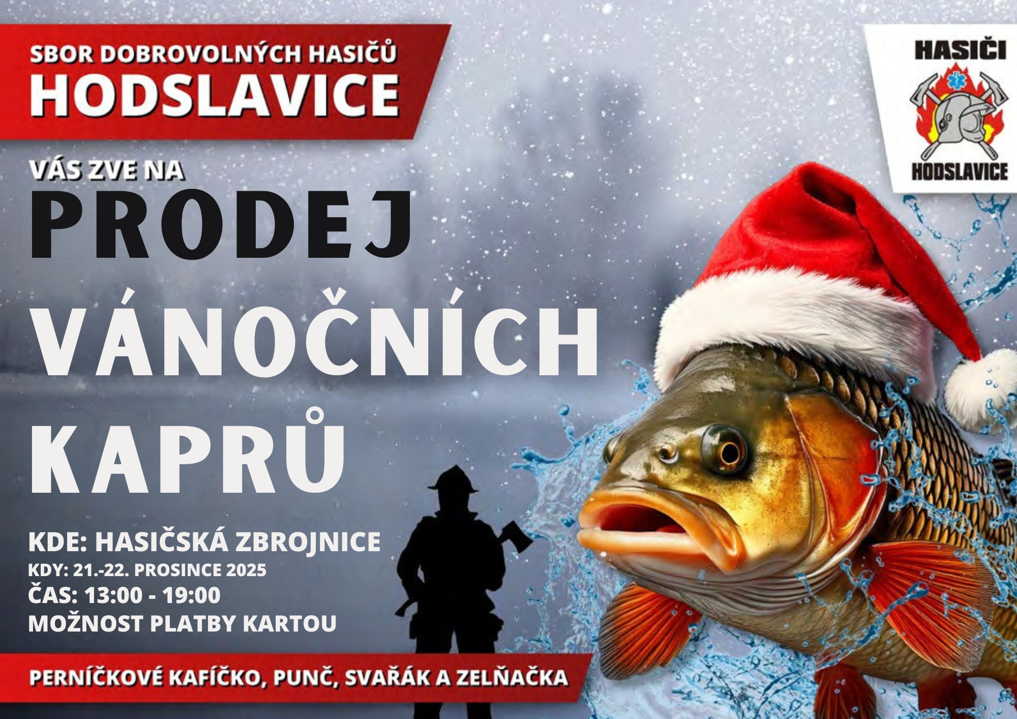 Prodej kaprů 1.12.2025 Vystavil: Jana Horáková Sdílet Sdílet Klikněte pro zkopírování URL Facebook Hasiči pořádají již tradiční prodej kaprů.