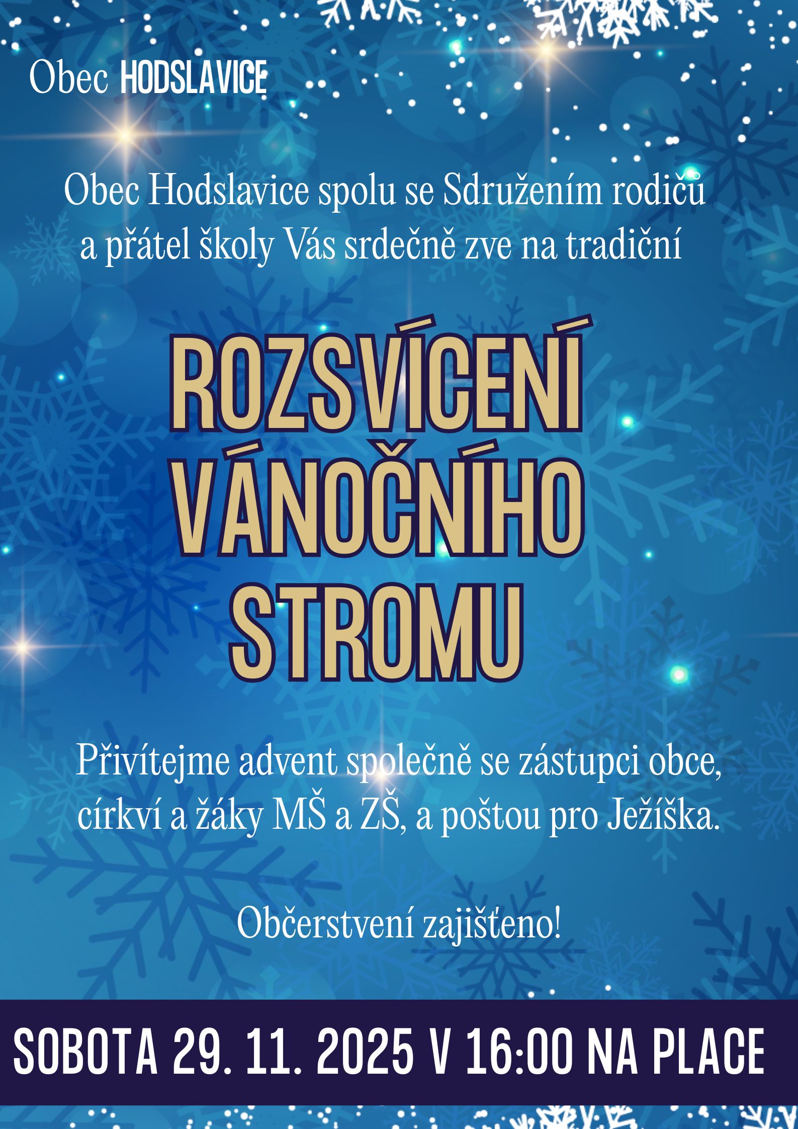 Rozsvícení Vánočního stromu 22.11.2025 Vystavil: Michaela Čípová Sdílet Sdílet Klikněte pro zkopírování URL Facebook Rozsvícení vánočního stromečku je jednou z nejkrásnějších tradic během vánoční doby. Přijďte si užít tuto radost společně a poslat Ježíškovi poštu.