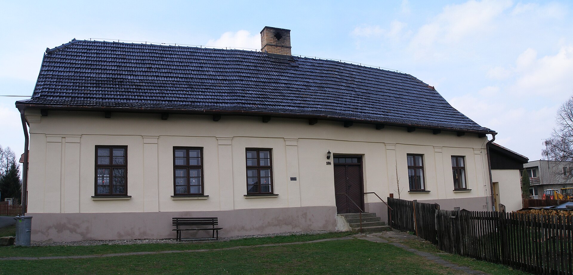Zděný samostatně stojící přízemní klasicistní dům s polovalbovou střechou, situovaný poblíž evengelického kostela. Objekt byl postaven v roce 1846 jako evangelická škola, která zde byla umístěna do roku 1919.