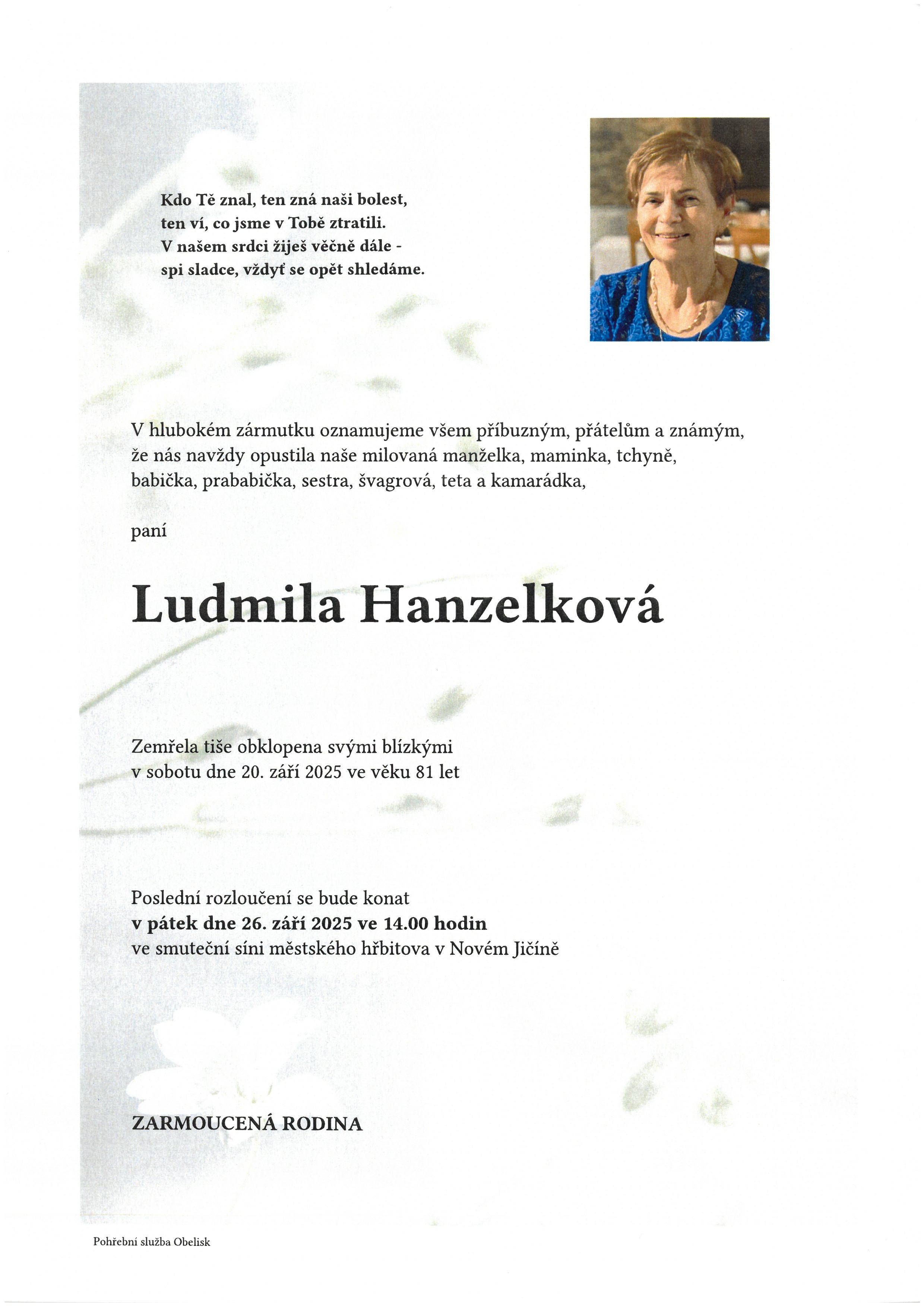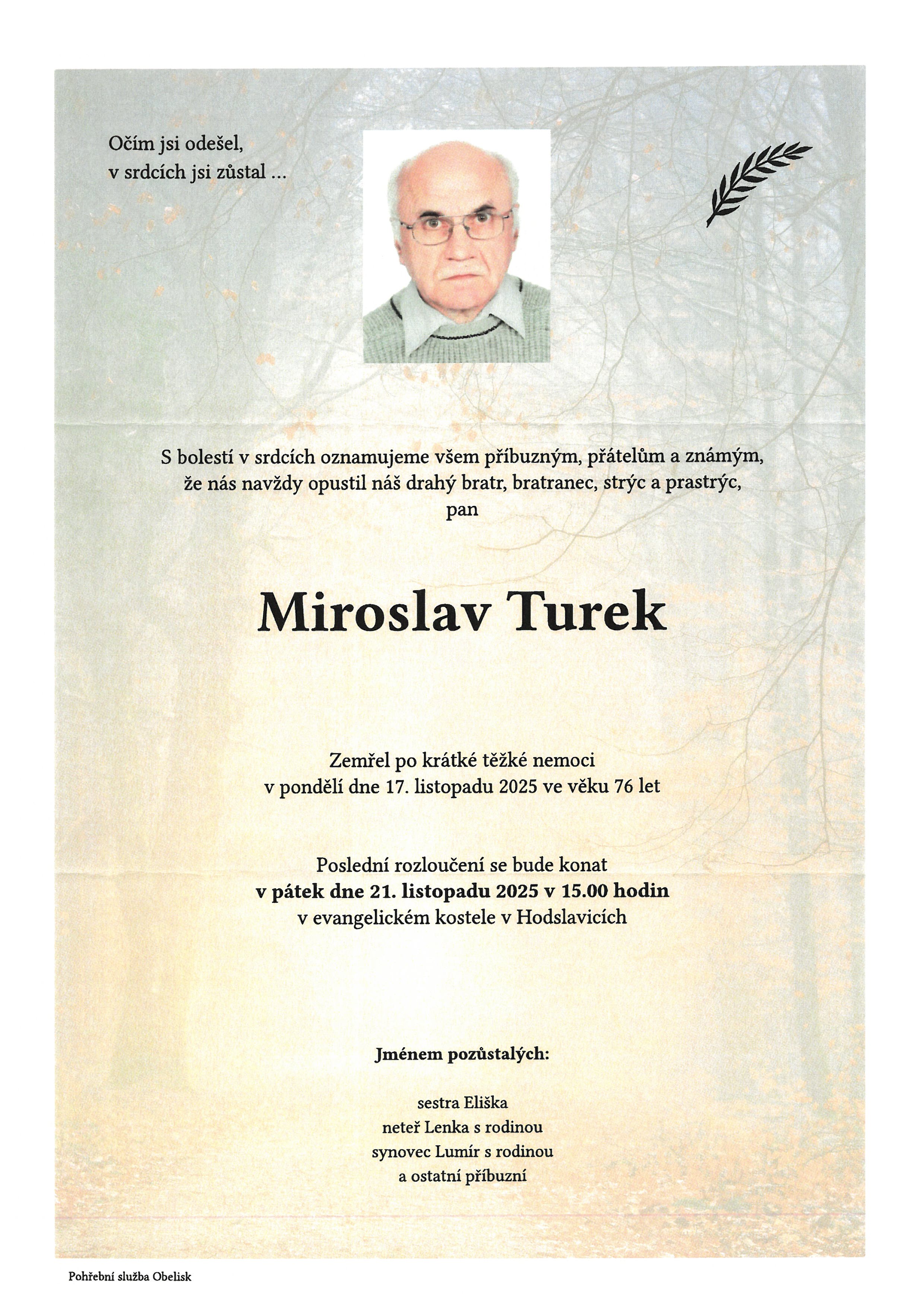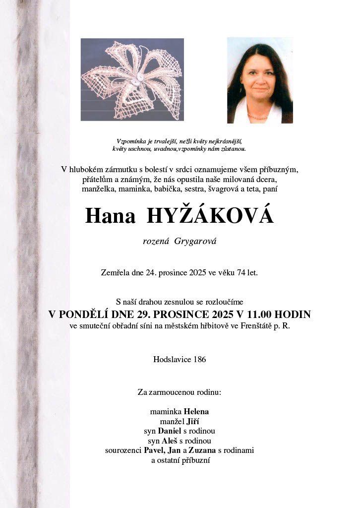Smuteční oznámení jsou zveřejňována jen se svolením a na žádost pozůstalých. Děkujeme za pochopení. OÚ